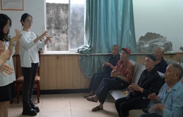 实践队员们用照片定格最美晚年,队员们为老人拍摄写真,照片洗出后制作成相册赠予养老院,将老人的笑脸定格成珍贵回忆;队员们以通俗易懂的方式讲解日常饮食搭配、适度运动和疾病预防等养生知识,并且现场示范养生操,指导老人练习,助力老人健康生活;实践队员结合真实案例讲解保健品诈骗、投资理财诈骗等常见类型,传授不轻信陌生人、不透露个人信息等防骗技巧,守护老人财产安全;团队还准备一系列生动有趣的手工课程,作为小老师耐心指导老人绘制,花朵、山水等图案,制作出一把把满载老人创意的漆扇;队员们因地制宜、就地取材用树叶、花瓣拓印,指导老人们摆出花样,敲打出独特图案,帆布包也化身成艺术单品;老人蘸颜料用印章作画,小葡萄、小柿子等图案诞生,艺术氛围弥漫养老院。